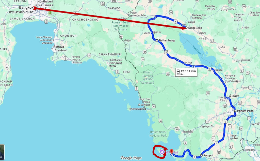 Von Kampot aus fuhren wir mit dem Zug weiter nach Sihanoukville, und von dort ging es direkt weiter auf die Insel Koh Rong, wo wir weitere 5 Tage verbrachten. Den Abschluss der Reise bildeten die Fahrt und eine Übernachtung in Phnom Penh. Von hier aus flogen wir mit einem Zwischenstopp in Bangkok wieder zurück nach Hause