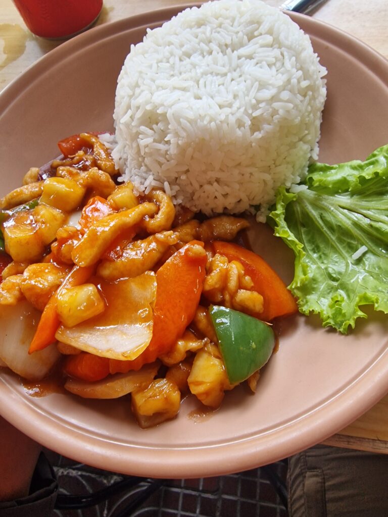 Zum Mittagessen gab’s zur Abwechslung mal Burger mit Pommes – nach 13 Tagen kultureller Eindrücke und landestypischer Gerichte genau die richtige Auszeit