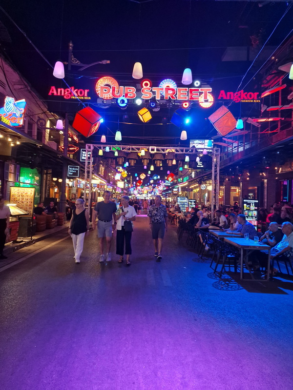 Am frühen Abend machten wir uns dann zu Fuß auf den Weg in die Stadt. Wir schlenderten über den Nachtmarkt, ließen uns durch die Gassen treiben und kehrten schließlich in ein Khmer-Restaurant zum Abendessen ein. Danach führte uns unser Spaziergang noch durch die Pub Street – heute allerdings nur für einen kurzen Fotostopp. Unseren Cocktail hatten wir schließlich schon beim Essen genossen. Zurück zum Hotel ging es gemütlich mit dem Tuk-Tuk.
