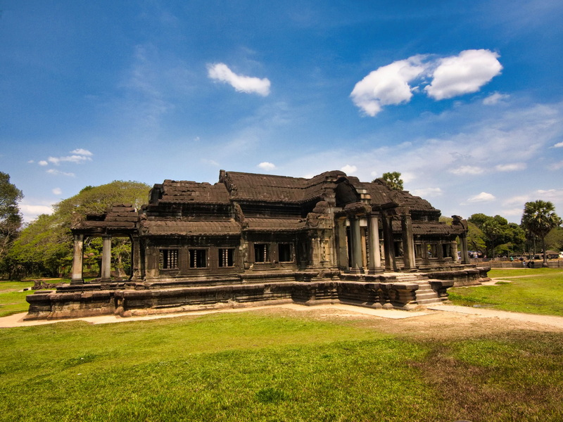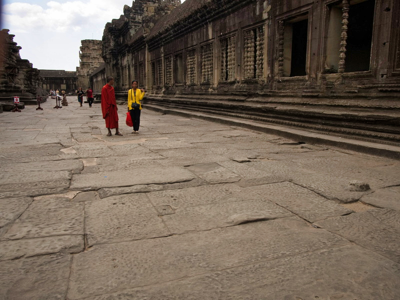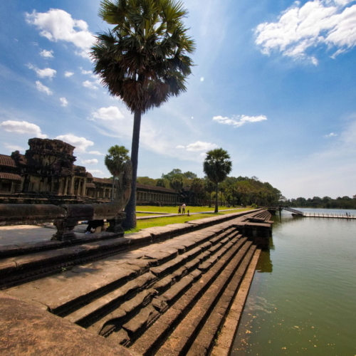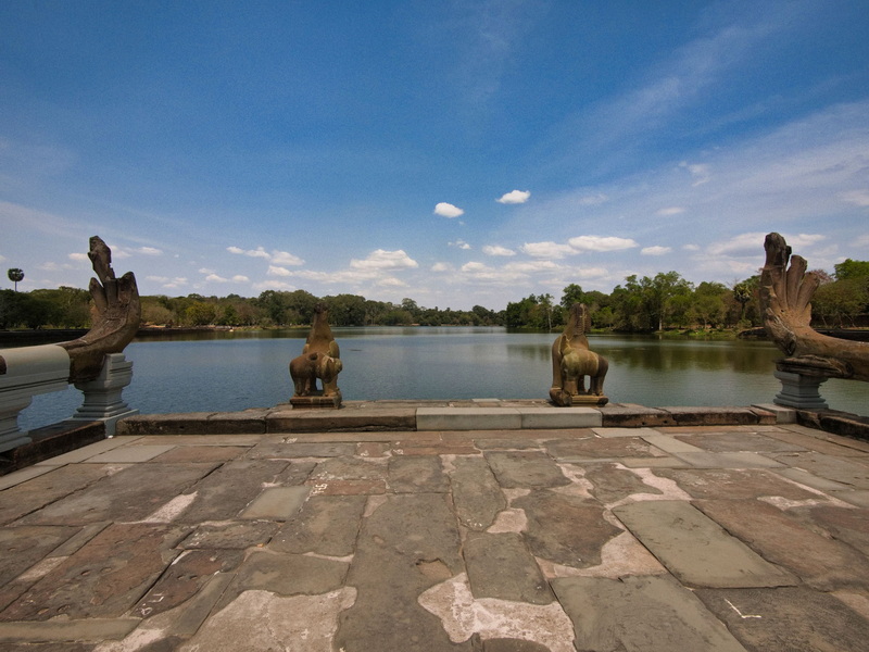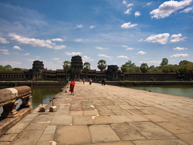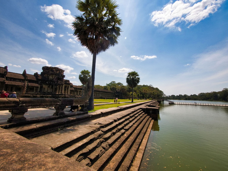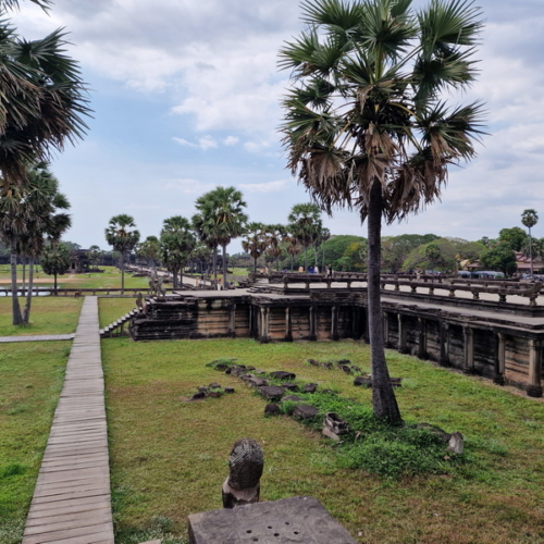 Vom äußeren Eingangstor aus führt zunächst ein breiter, etwa 190 Meter langer Damm über den Wassergraben. Anschließend geht es weiter über einen geraden Steinweg, der sich durch den weitläufigen äußeren Bereich des Tempelkomplexes zieht und schließlich zur inneren Tempelanlage führt.