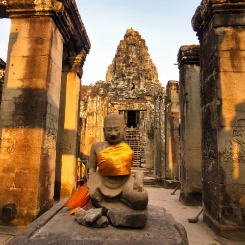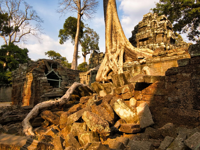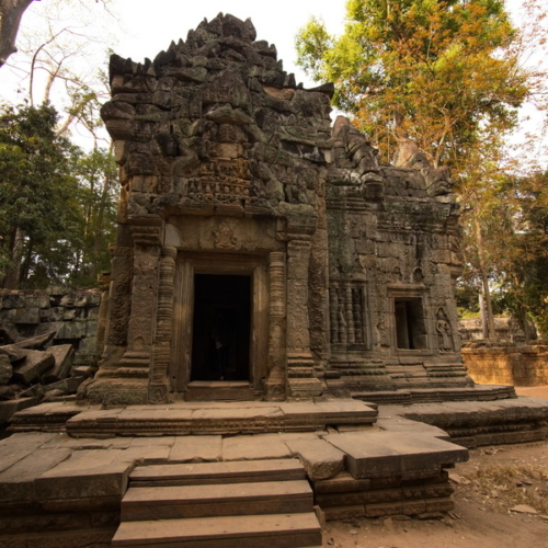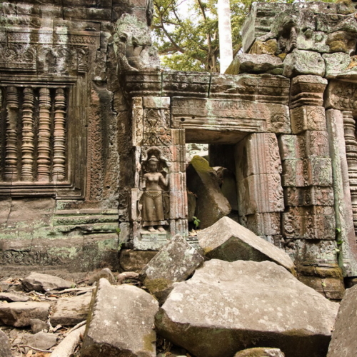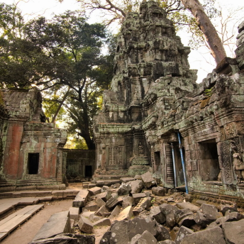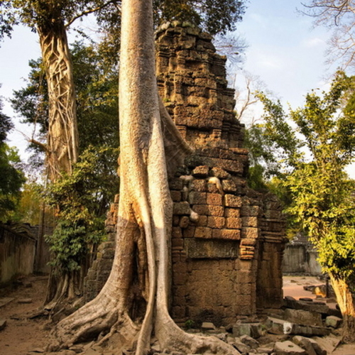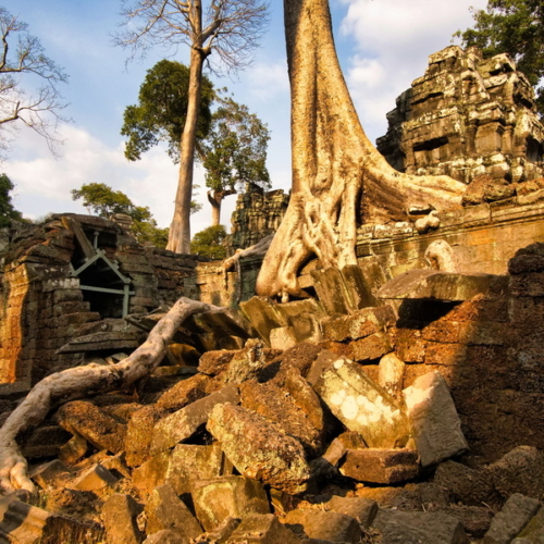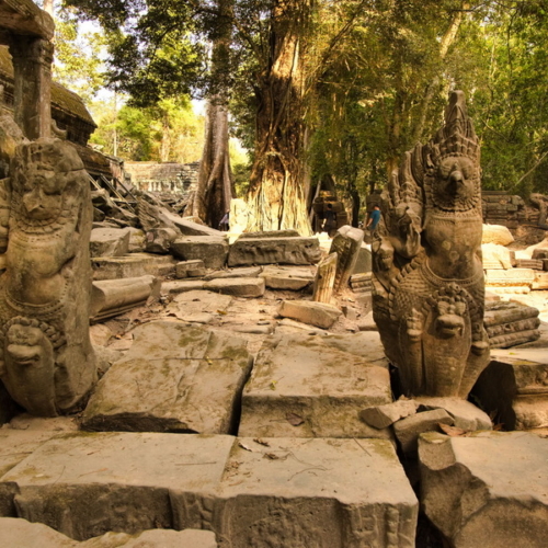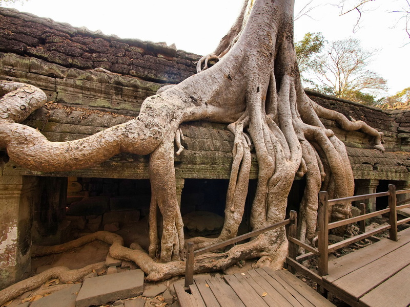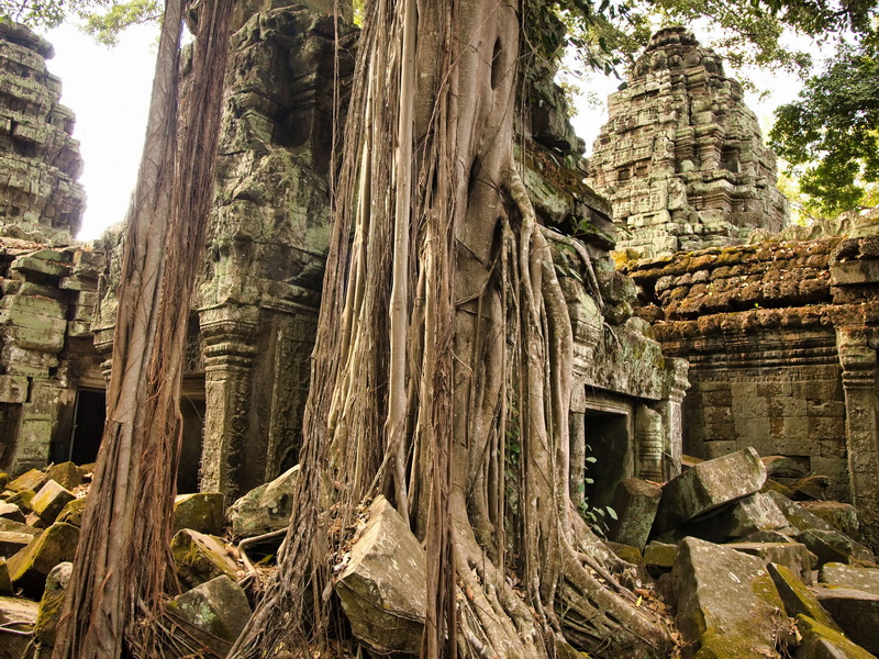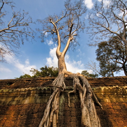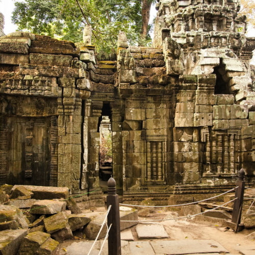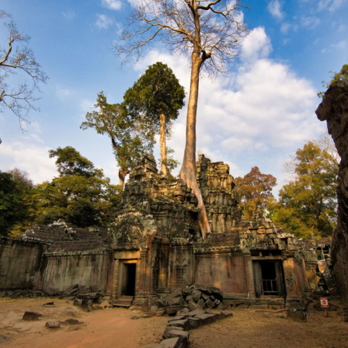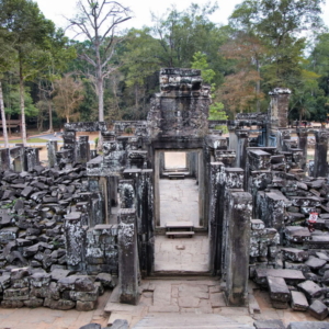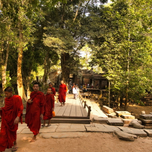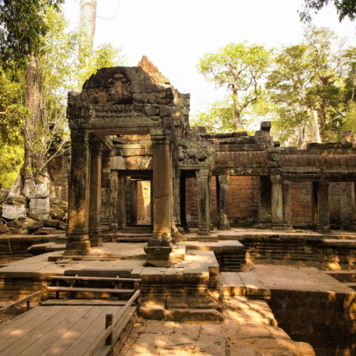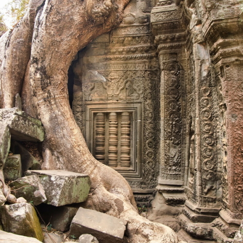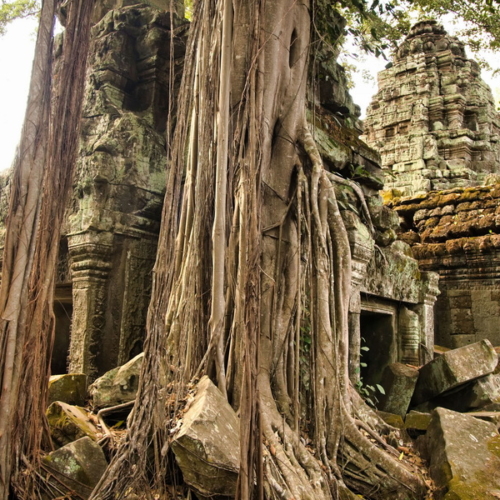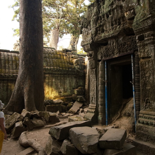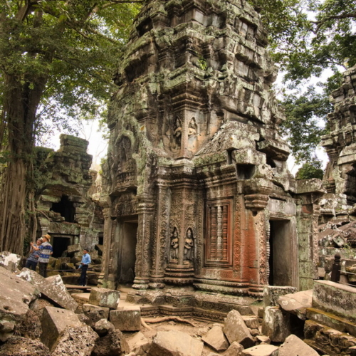 ist einer der bekanntesten Tempel der Angkor-Region – nicht zuletzt wegen der gewaltigen Bäume, die sich über die Mauern und Dächer gelegt haben. Anders als bei Angkor Wat wurde die Anlage größtenteils im Zustand belassen, wie sie nach ihrer Wiederentdeckung vorgefunden wurde. Das Zusammenspiel von Stein und Natur verleiht dem Ort eine ganz eigene Atmosphäre.