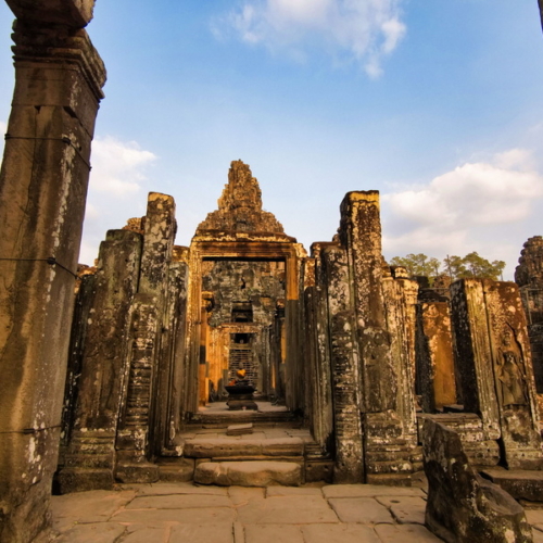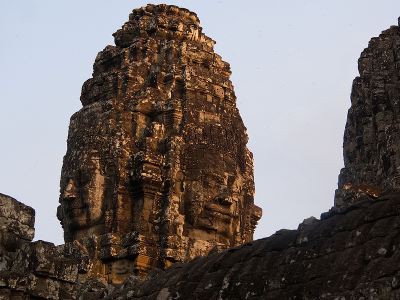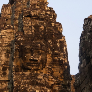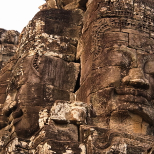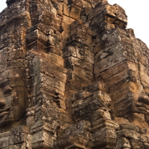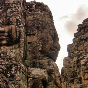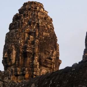 Der Bayon-Tempel liegt im Zentrum der ehemaligen Königsstadt Angkor Thom und wurde Ende des 12. Jahrhunderts unter König Jayavarman VII. erbaut. Er ist besonders bekannt für seine 54 Türme mit über 200 lächelnden Steingesichtern, die vermutlich eine Kombination aus dem Gesicht des Königs und des Bodhisattva Avalokiteshvara darstellen.