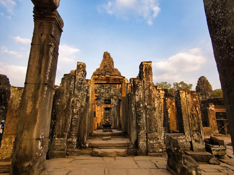Bayon war der offizielle Staatstempel des Mahayana-Buddhismus und wurde später teilweise in ein hinduistisches Heiligtum umgewandelt. Architektonisch unterscheidet sich Bayon deutlich von anderen Tempeln in Angkor: Die Anlage ist komplex und wirkt auf den ersten Blick unstrukturiert, was sie besonders eindrucksvoll und einzigartig macht.