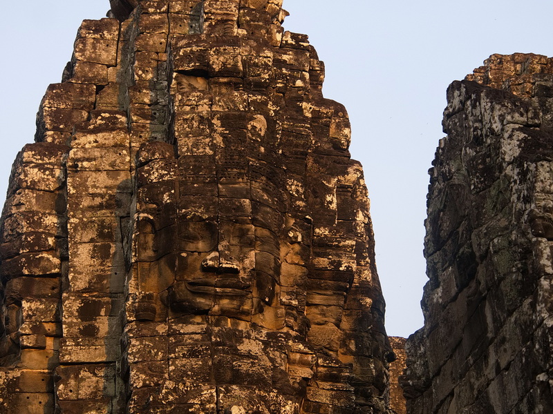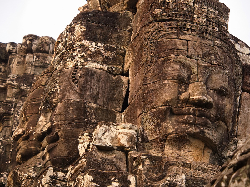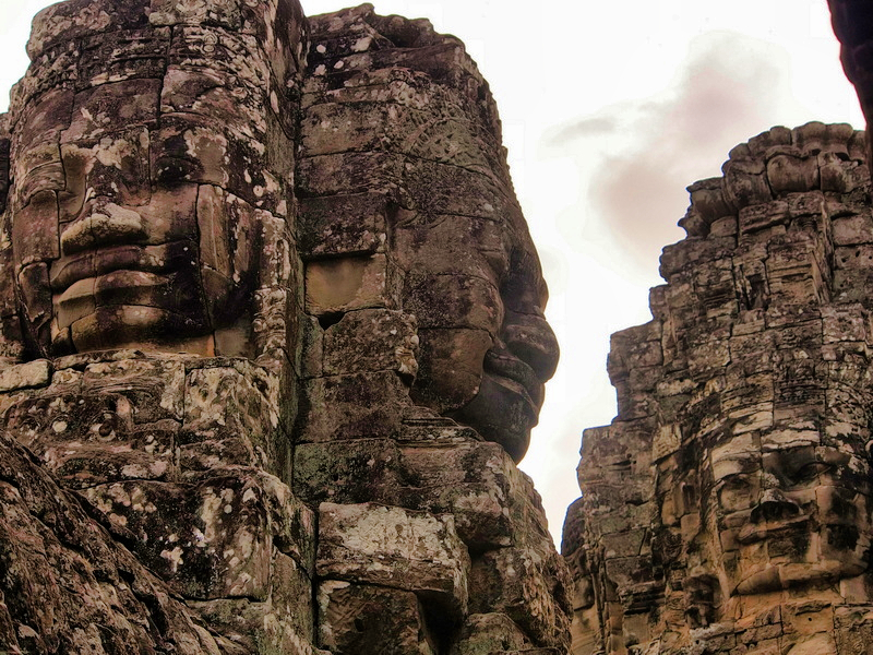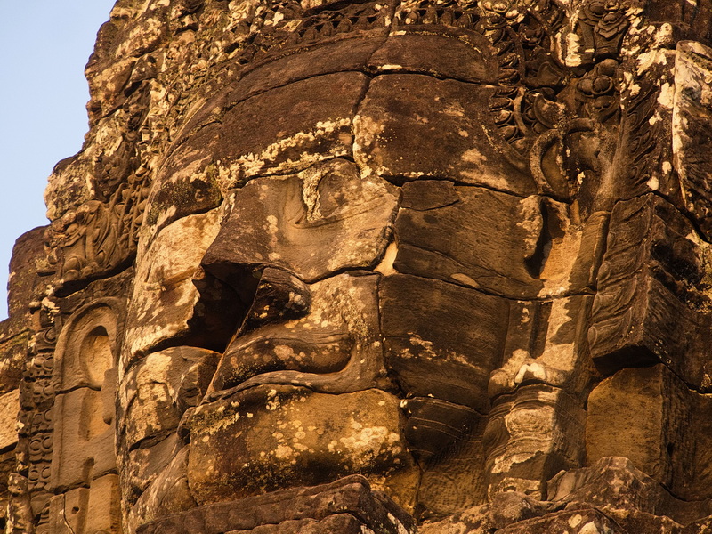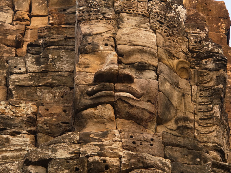 Die Gesichtsausdrücke wirken ruhig, gelassen und zugleich durchdringend. Diese sogenannte „Khmer-Lächeln“ symbolisiert Mitgefühl, Güte und die allsehende Präsenz des Bodhisattva – oder des Königs selbst, der damit seine göttliche Legitimation unterstreichen wollte.