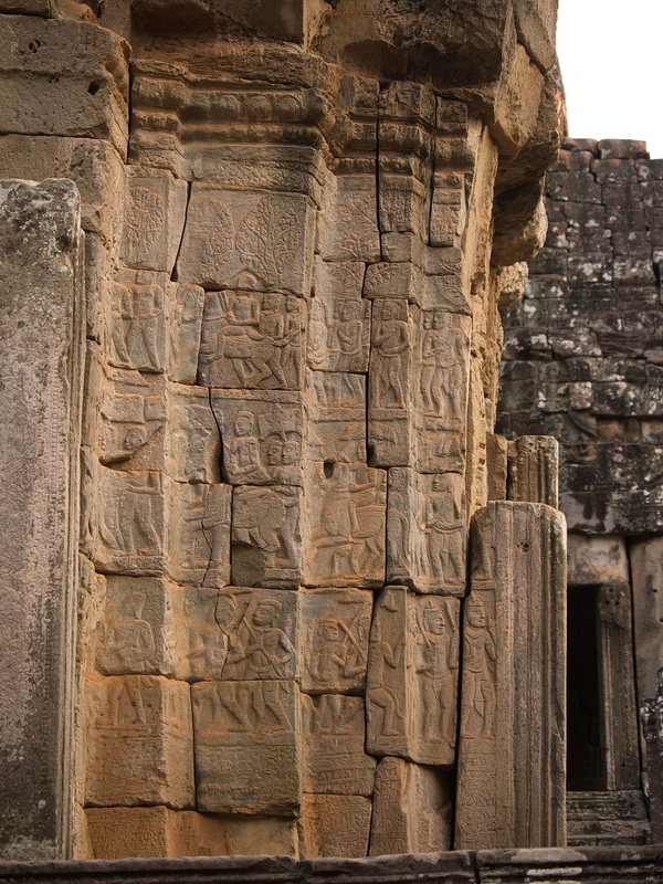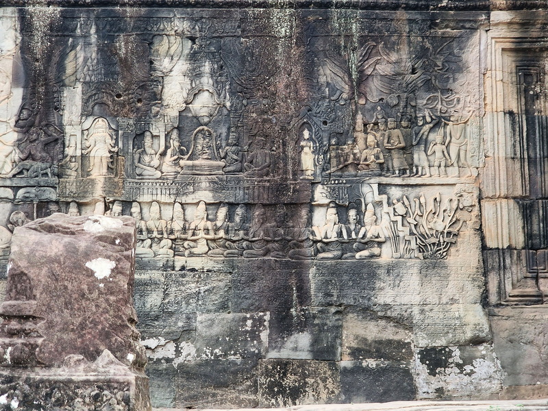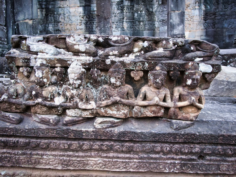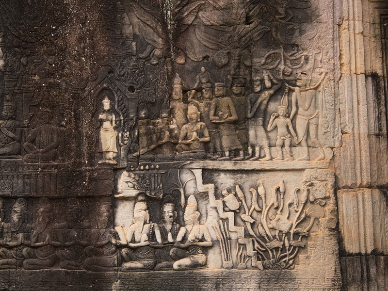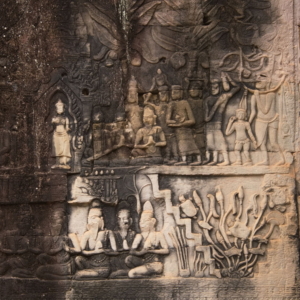 Es war faszinierend zu sehen, wie unterschiedlich die Reliefs in den einzelnen Tempeln gestaltet waren. Die Darstellungen im Bayon unterschieden sich deutlich von denen in Ta Prohm oder Angkor Wat – hier wirkte alles lebendiger, erzählerischer, fast schon wie ein steinernes Geschichtsbuch, das vom Alltag, vom Krieg und von zeremoniellen Szenen der Khmer erzählt.