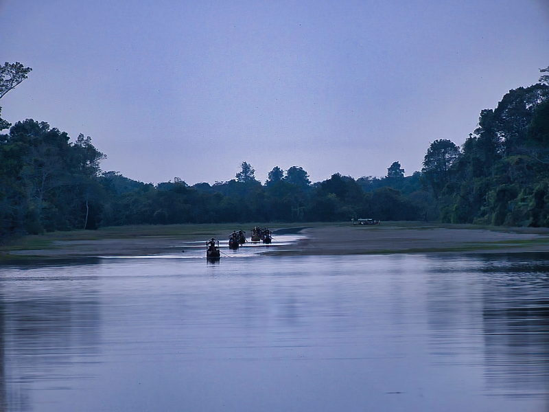 Bei der Ausfahrt aus Angkor Thom hielten wir noch kurz an der Brücke mit den bekannten Dämonenfiguren. Für gute Fotos war es allerdings schon zu dunkel – ein Grund mehr, an einem anderen Tag dorthin zurückzukehren.
